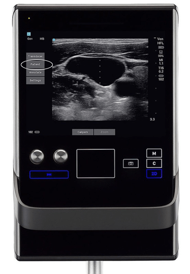 Select the ‘Patient’ menu by tapping the screen. On the subsequent menus select ‘New/End’. Enter the MRN under the ‘ID’ field. Select ‘Done’