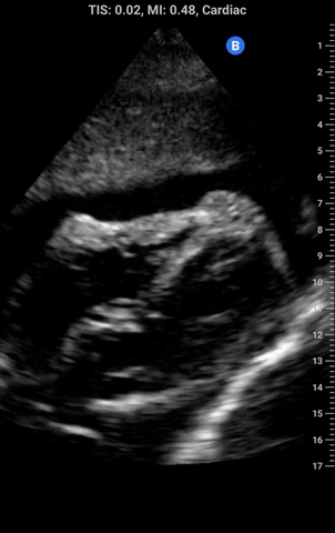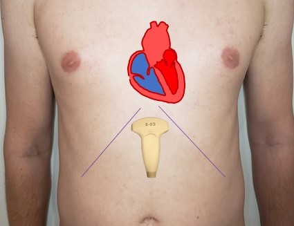 Attempting to image the heart from directly below the xiphoid process is frequently limited by gas within the stomach. In this case move to the right and down and use the left lobe of the liver as an “acoustic window”. The liver does not scatter the ultrasound beam and therefore provides a clear path to the heart.